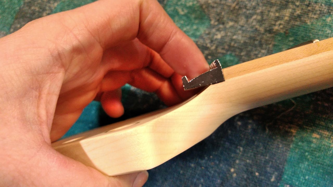 深く埋め込むほど効果的ですがあんまりやりすぎるとネックの裏側に貫通してしまいます。加減が難しい所ですね。