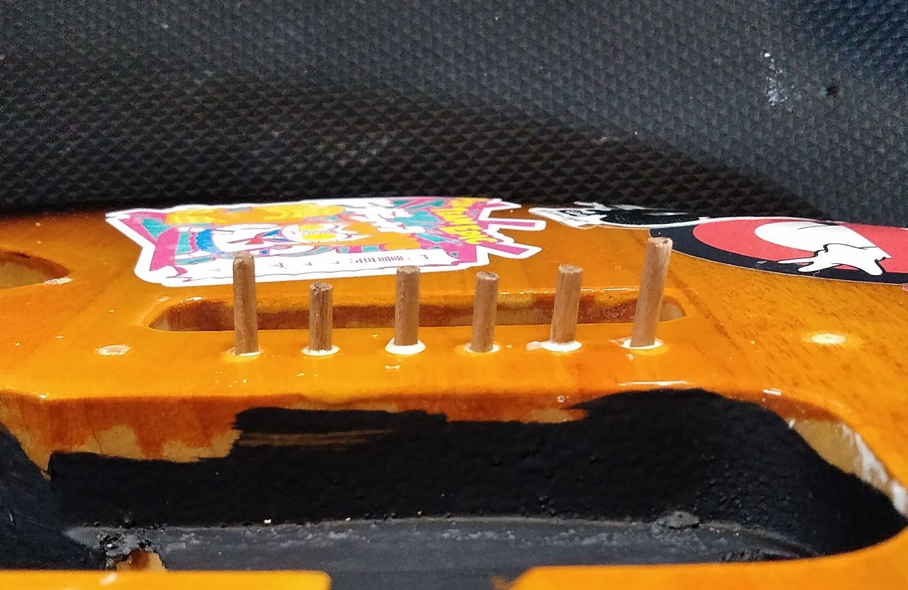 ちなみにPUセレクターとボリュームの間の黒いスイッチは前職場で取り付けたキルスイッチです。押してる間だけ音が消えます。