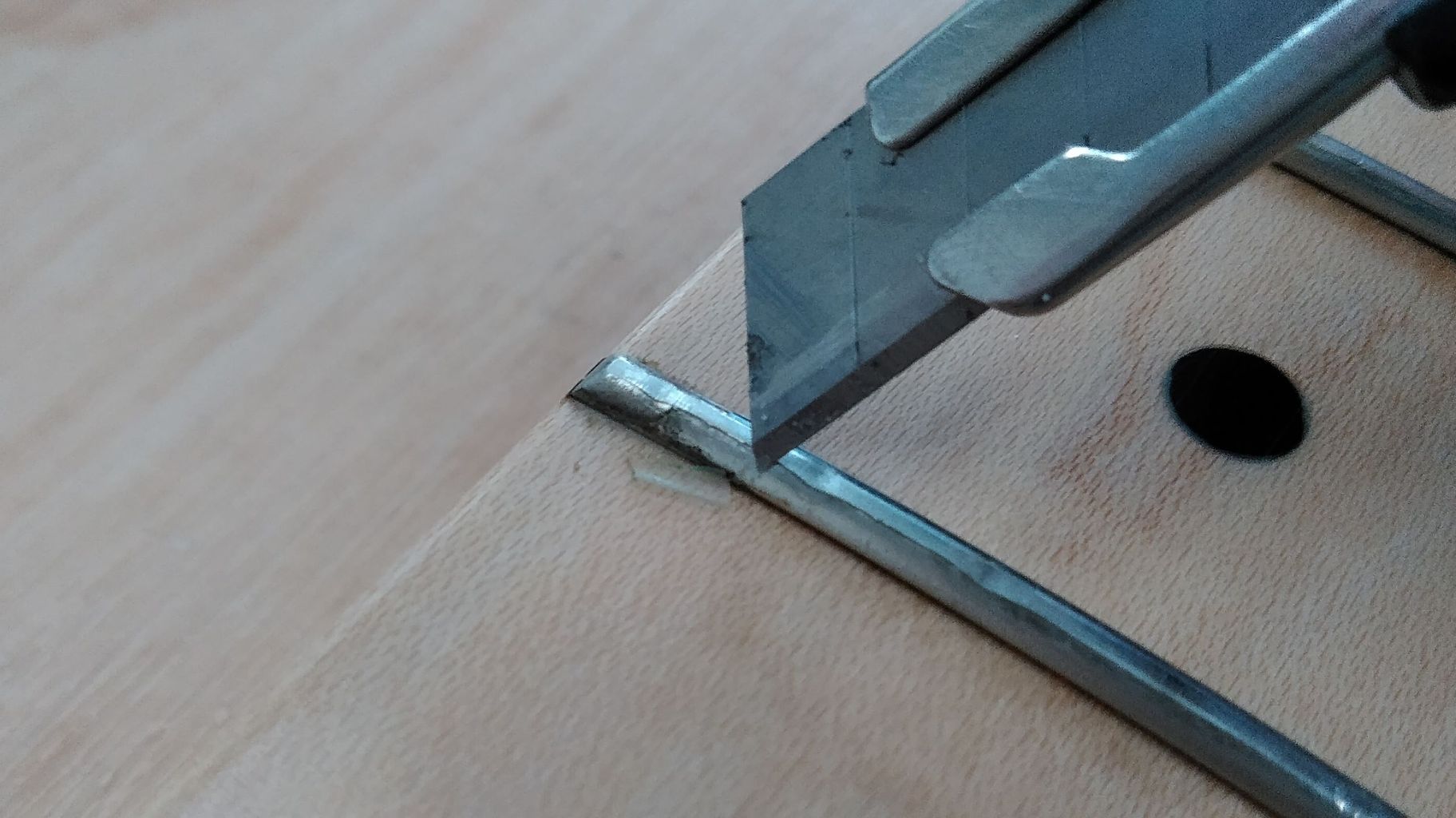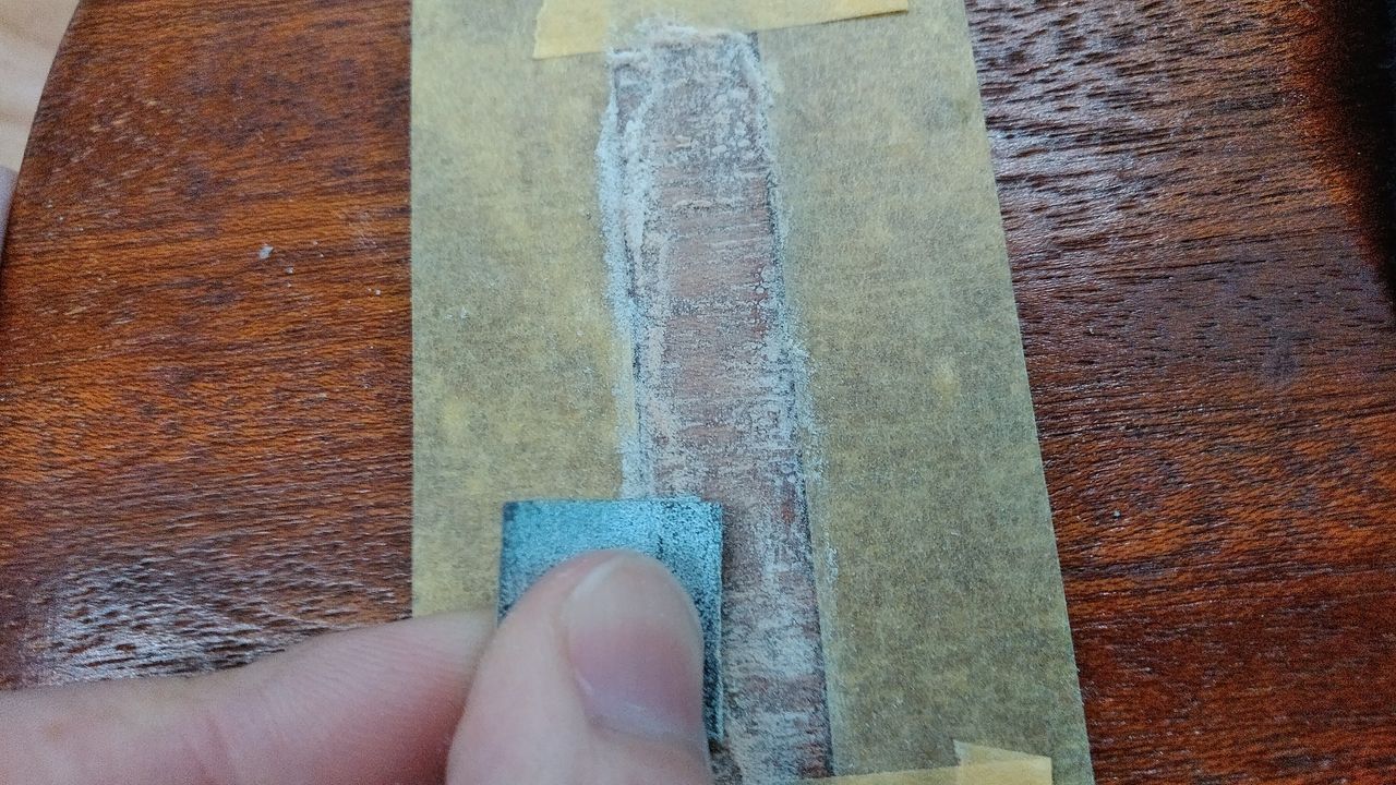 当て木にマスキングテープを貼っているのは一緒に接着されてしまわないようにです。