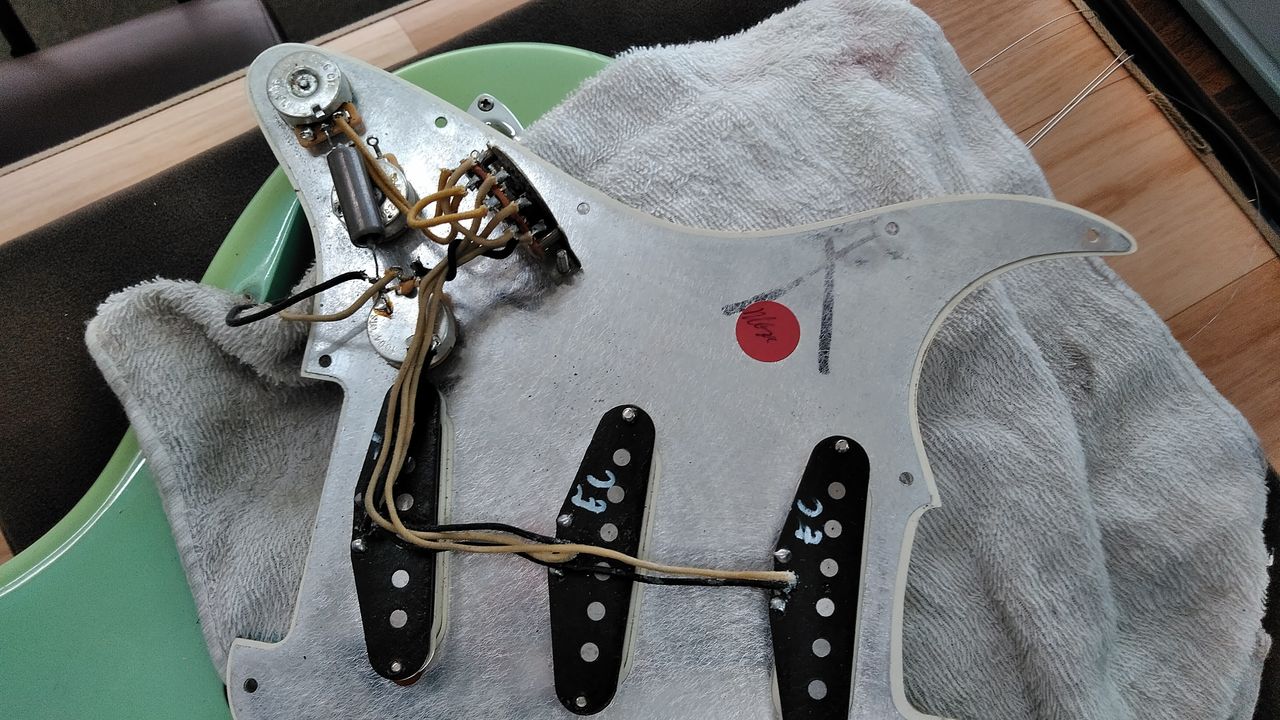 前回ボリュームの位置を変更したストラトですが次はPUの交換作業です。