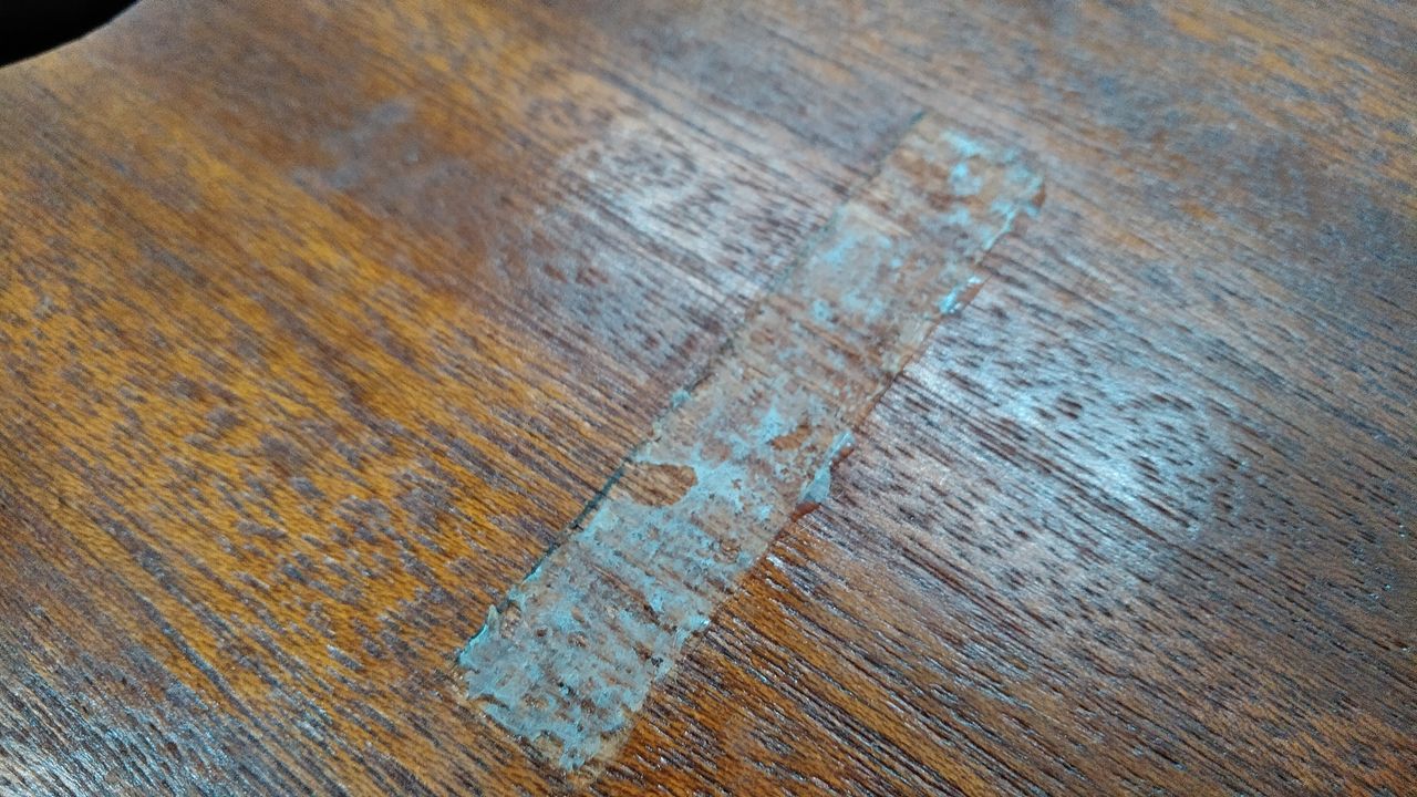 ブリッジ裏にも少し付着してますね。セメダインCでしょうか?