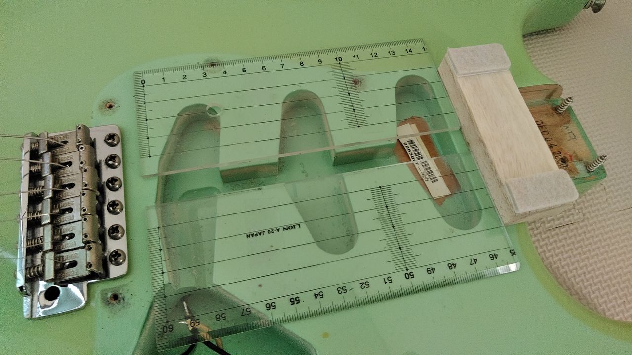 フロントとセンターは僅かに出力やトーンに差があるのですが今回はセンターをピックガードとツライチまで下げて欲しいとのご依頼です。