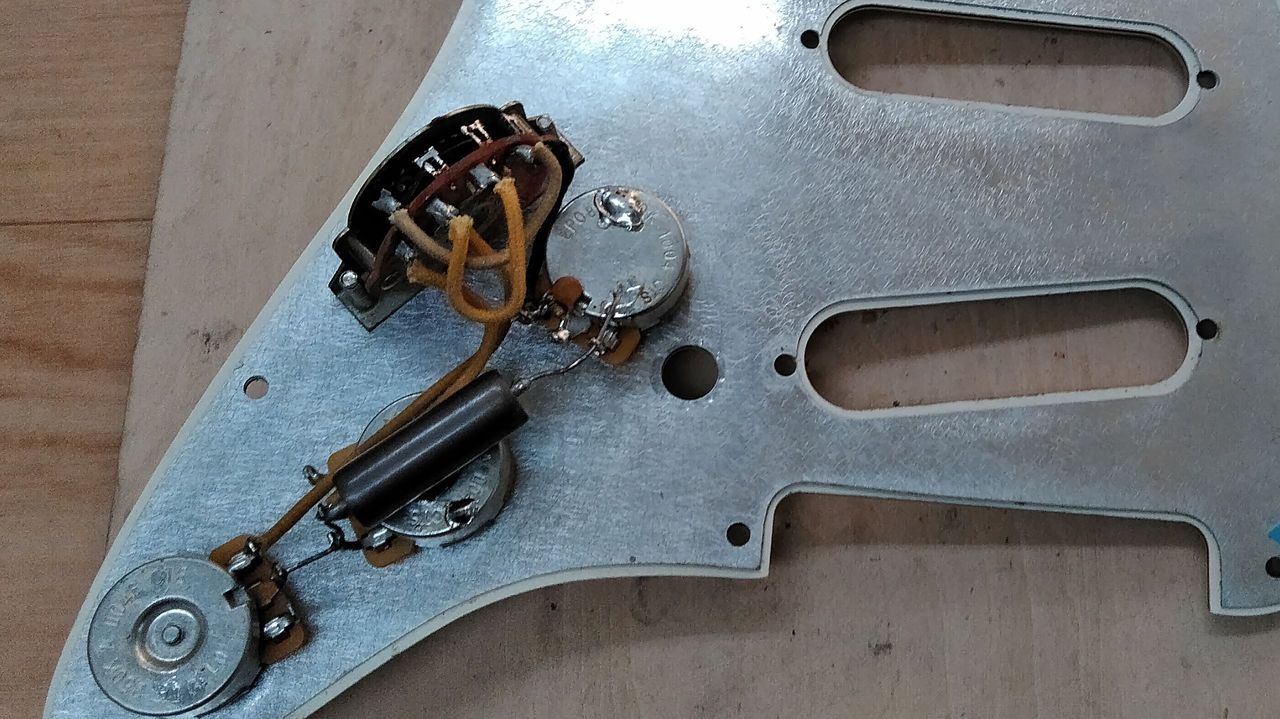 ご依頼はピックアップの交換(3つとも)とボリュームの位置の変更です。
