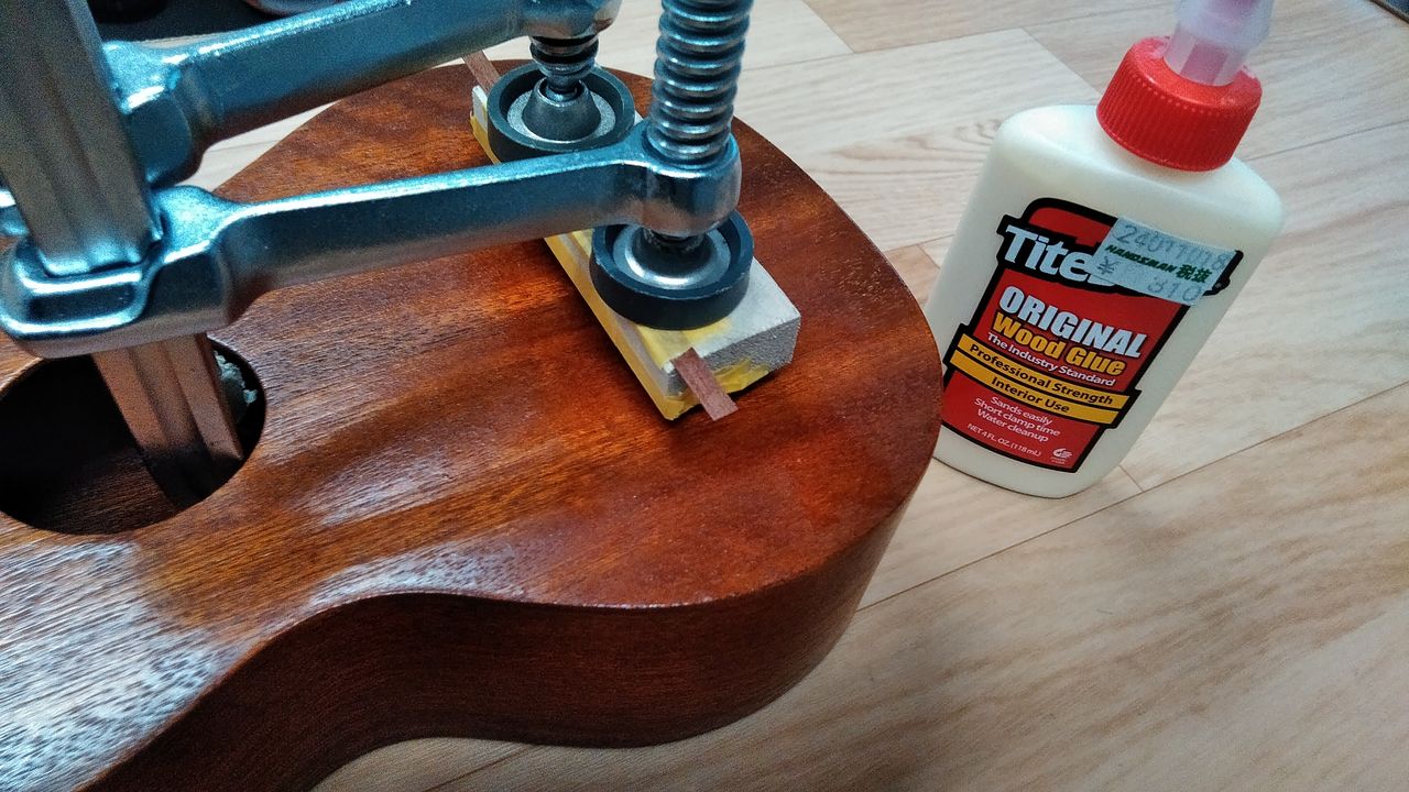 ↑今日はウクレレのブリッジはがれの修理。ウクレレによくあるトラブルですね。