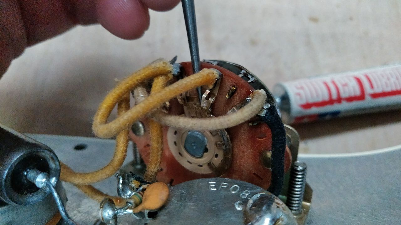 PUセレクタースイッチからノイズが出ていたのでタミヤの接点グリスの出番です。