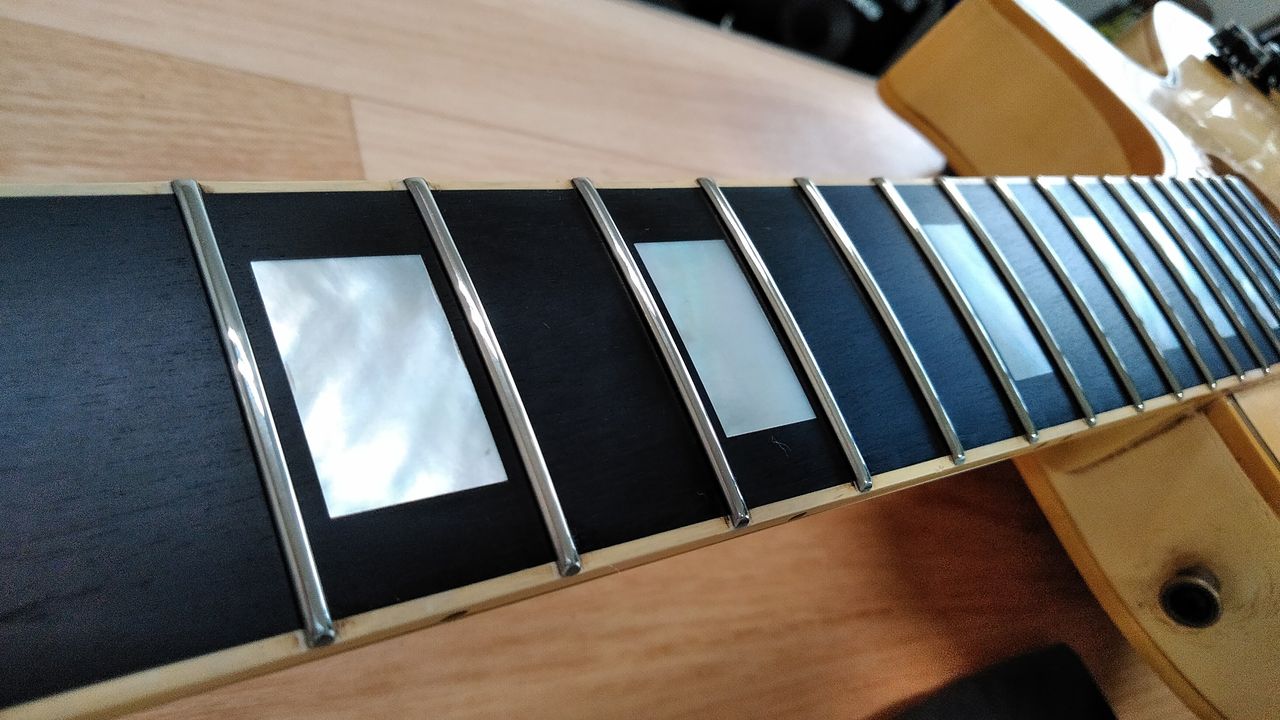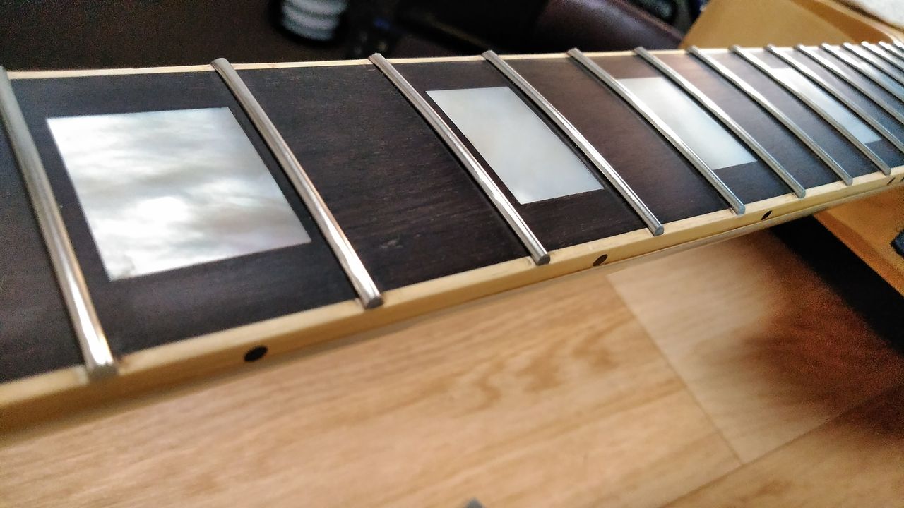 そんな訳で上半期(?)最後のブログです。先日からのレスポールはいよいよフレット打ちこみです。