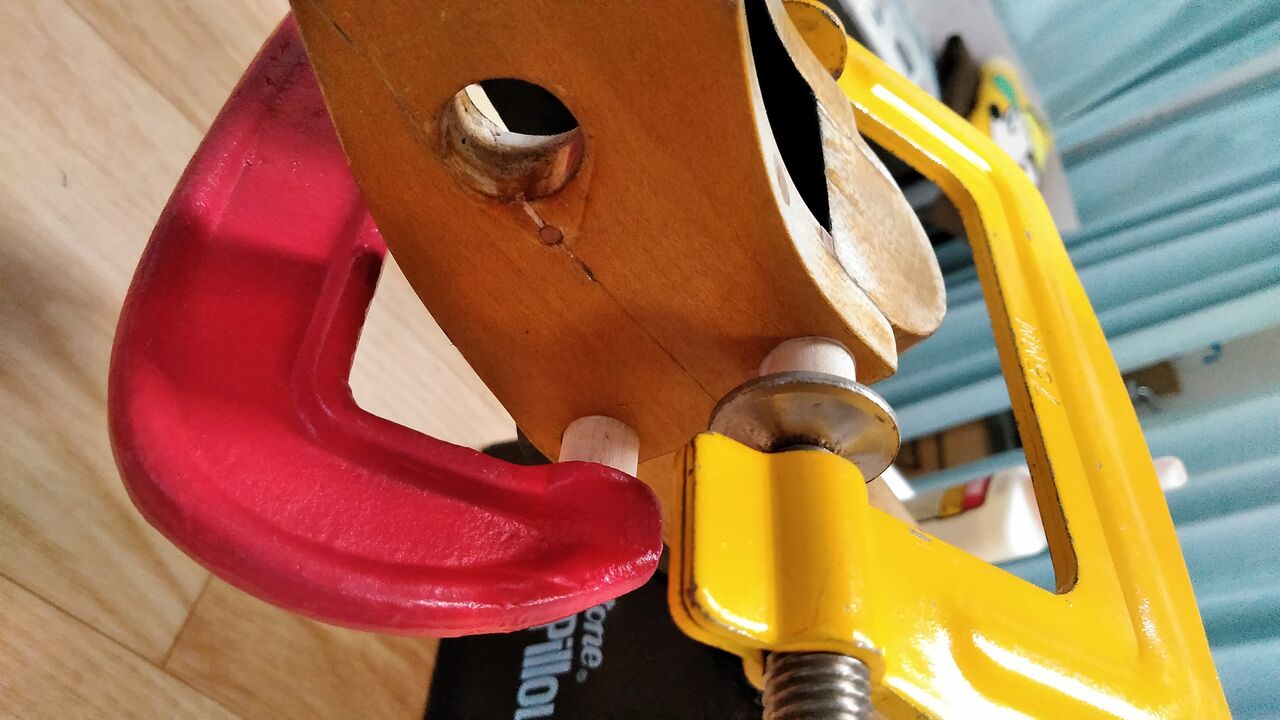 前回整形した部分は木部がむき出しなのでオイルフィニッシュ用のカラーオイルを調合して擦り込んでおきます。完全に色は合わせられませんが何もしないよりは目立たないかと。