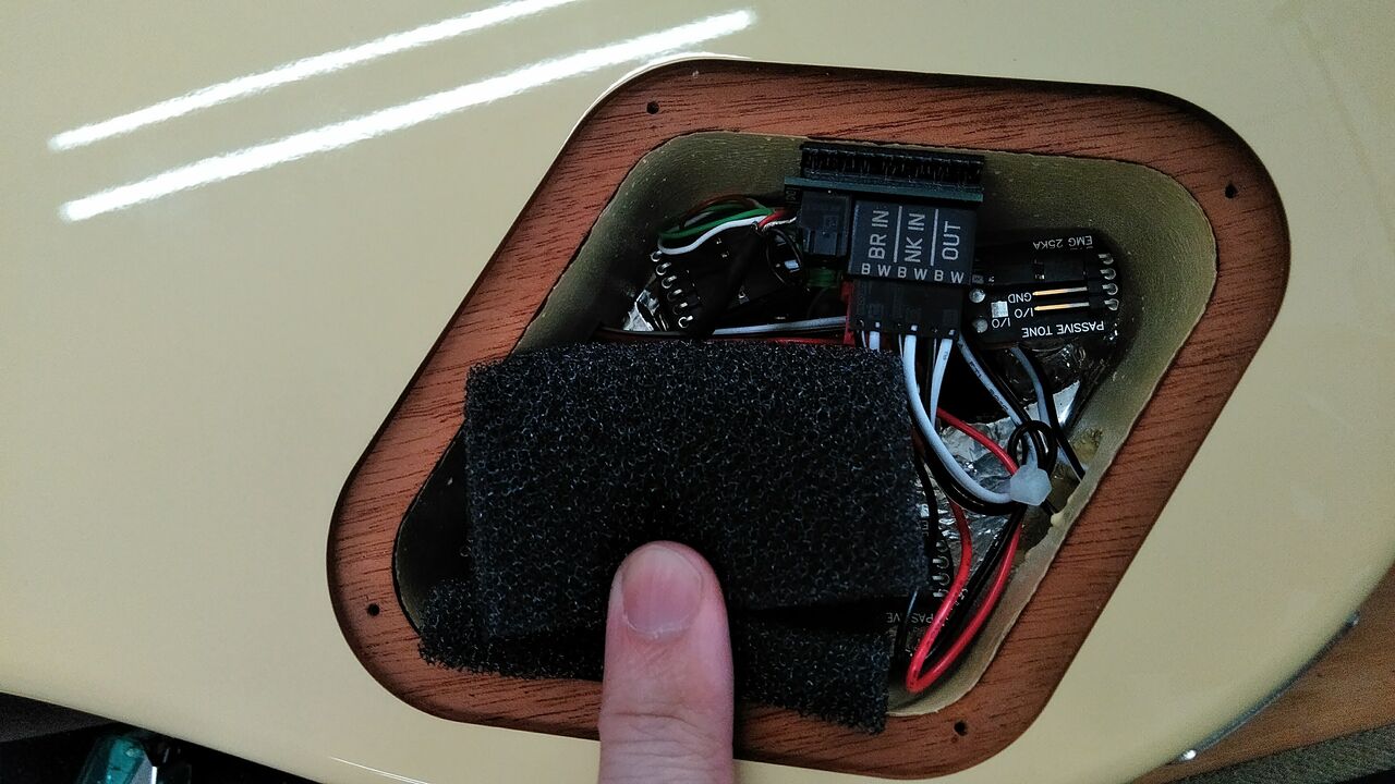 今回ピックアップ交換と併せて上側がフロント、下側でリヤのごく普通の配線パターンへの変更もご依頼いただきました。