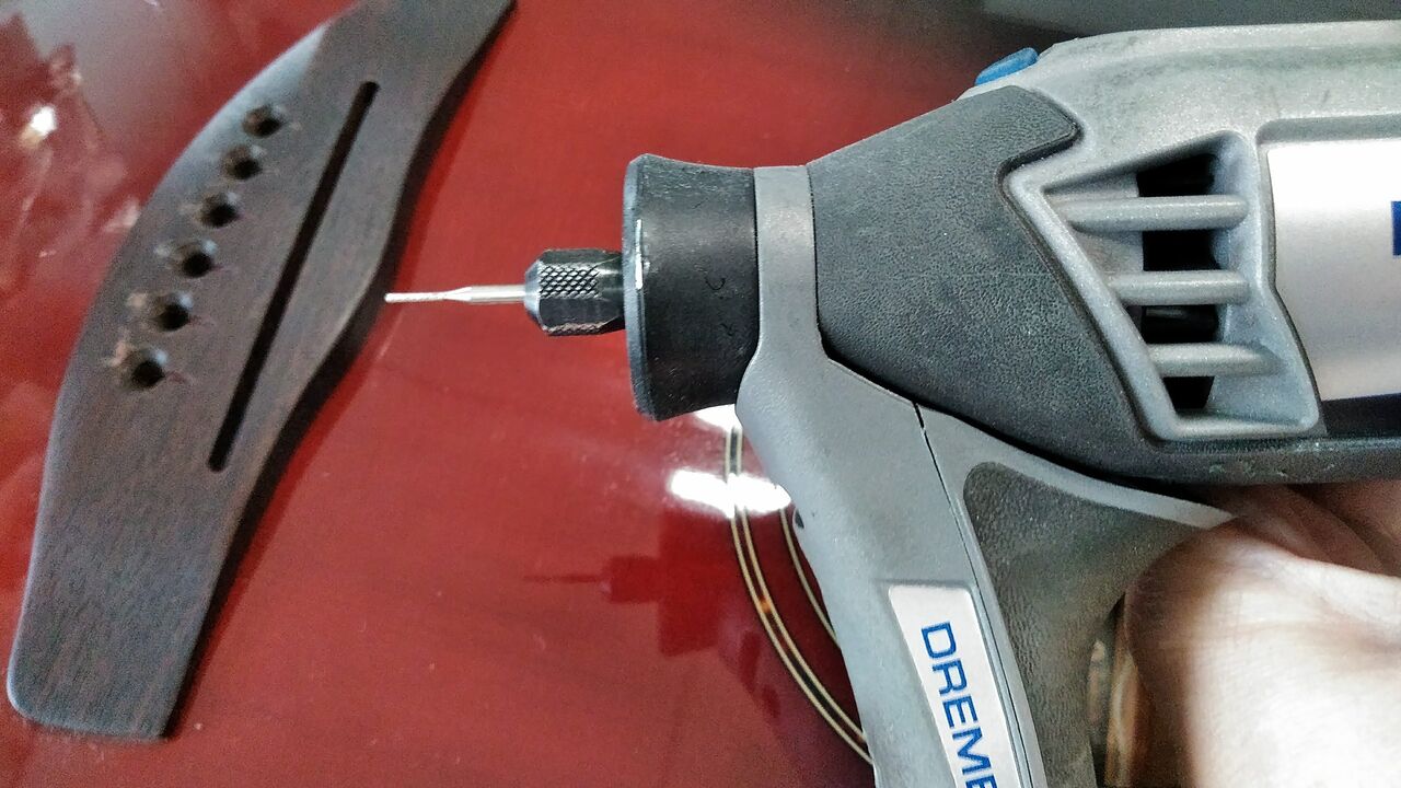 前回のCPXですが低く削られたサドルへテンションを掛けるためにブリッジピンの穴からサドルへ向かってスリットを入れます。