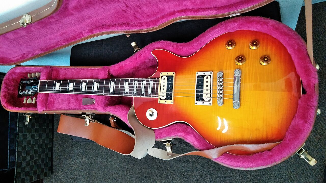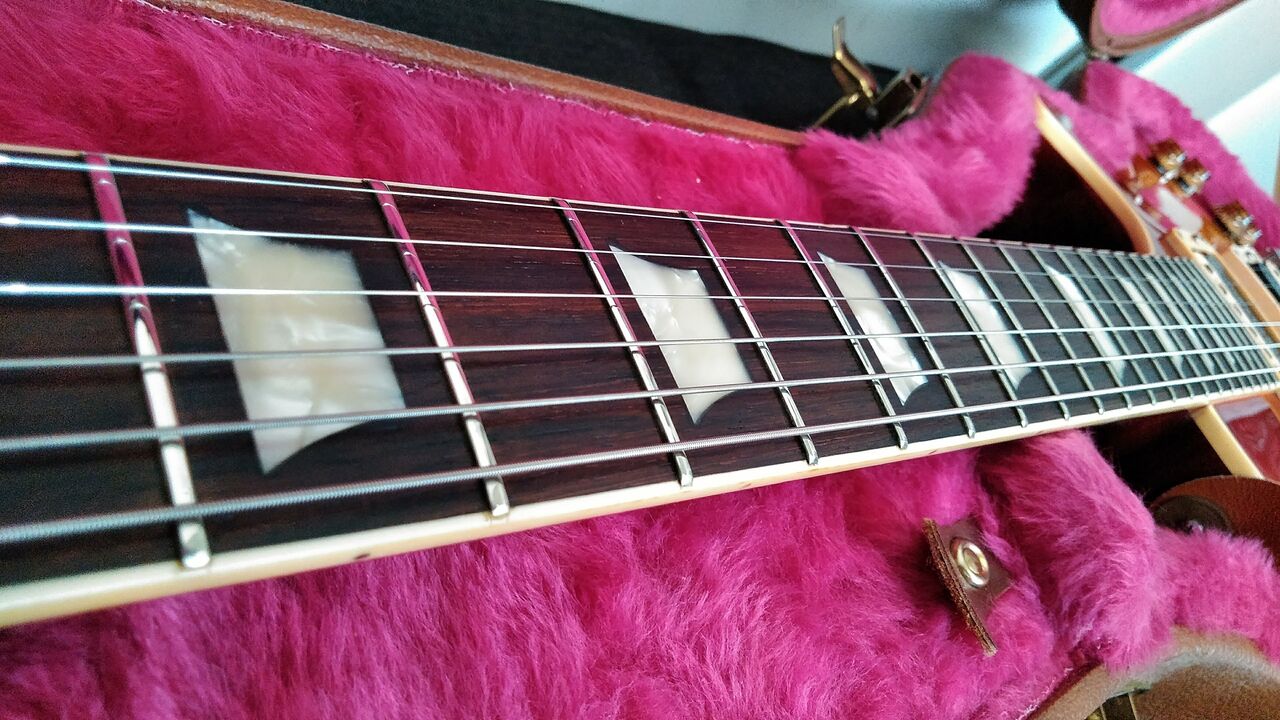ネックの反りや弦高等を調整して完成です。虎目の出たレスポールはかっこいいー!