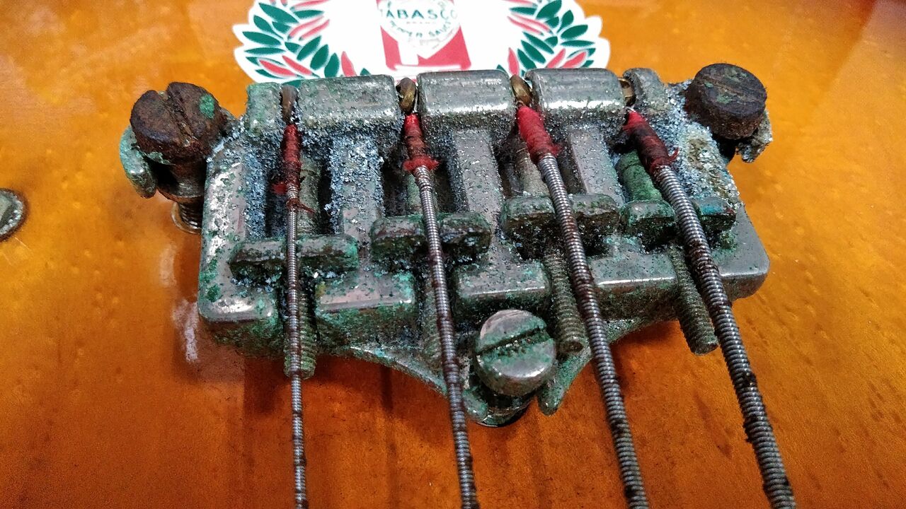 かなりの時間が経過している様子でブリッジの腐食が激しいです。クリーニングして極力オリジナルパーツが使える状態にします。