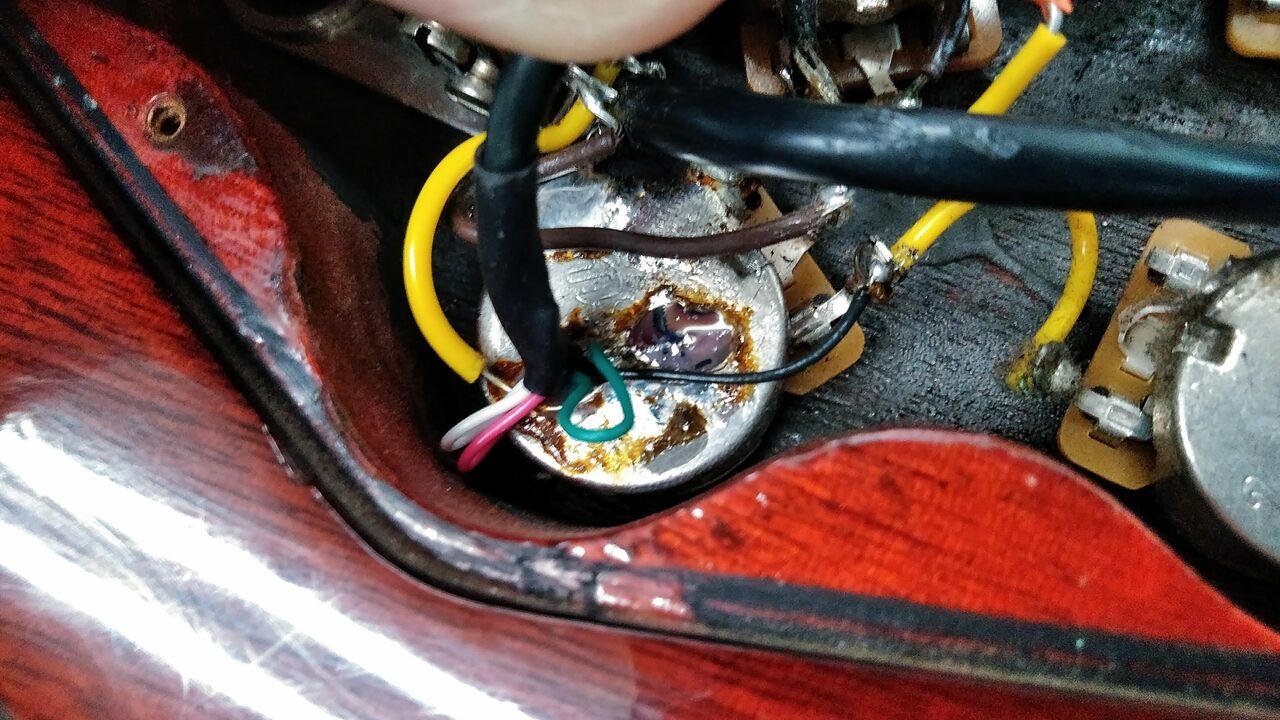 ちょっと不安だったリヤPUの配線もついでに修正しておきます。アース側の線は出来るだけホット側から遠ざけておくのもトラブル回避に役立ちます。(続く)