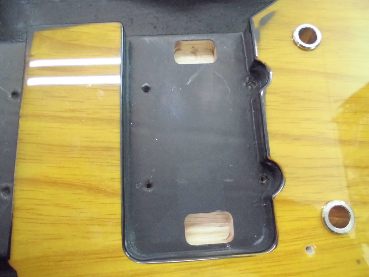 ピックアップキャビティは足が入るところだけザグりました。画像はありませんがザグった部分には導電塗料を塗り足しています。