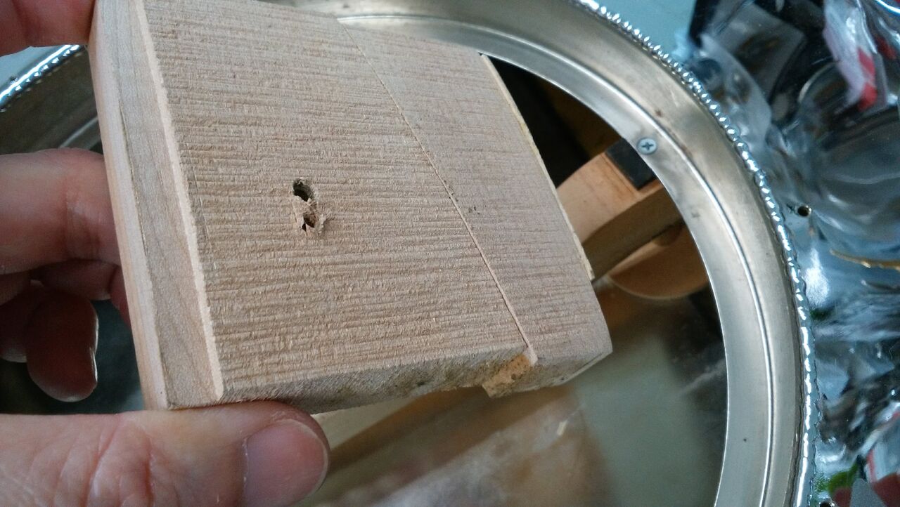 トレモロハンガーのネジ穴を開ける作業。ロングビットが無いと難しいですね。