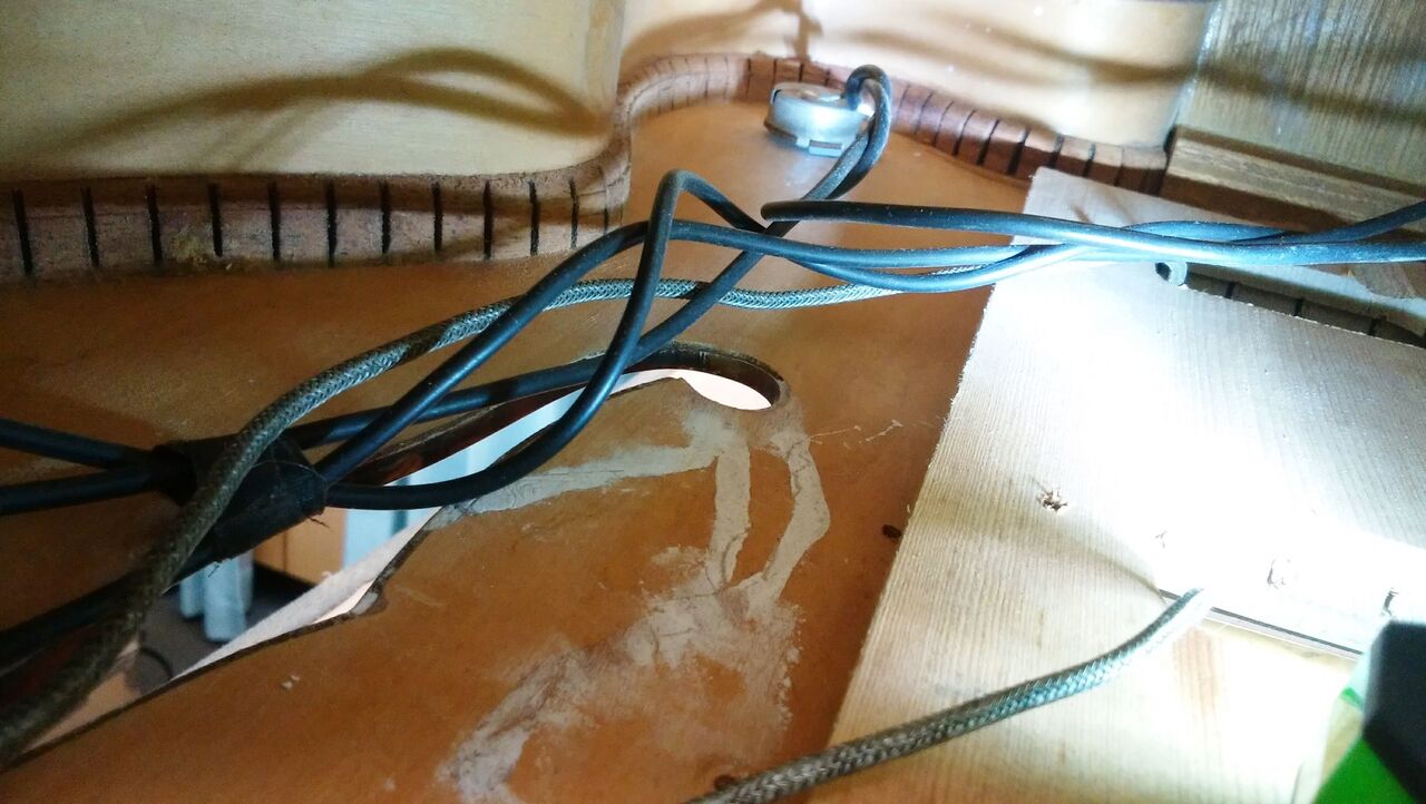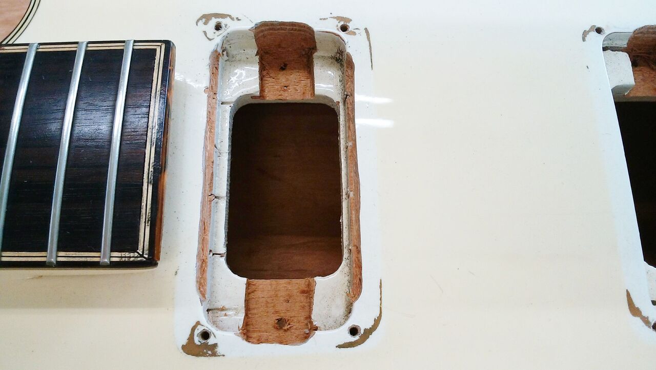 ピックアップはあとから交換されているようです。配線の取り回しは大雑把ですね。