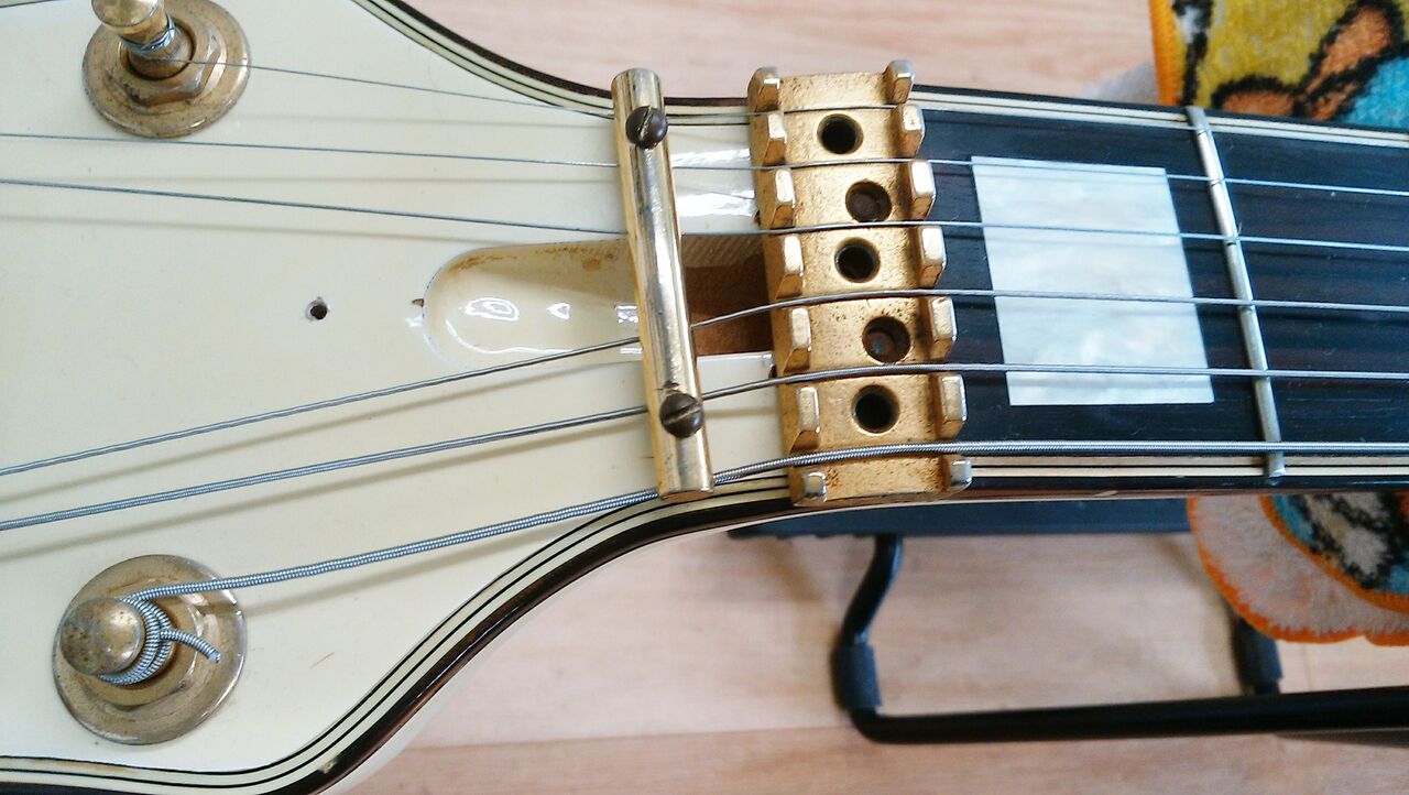 あちこちに手を加えられているのですがまずはこの謎のロックナット。チューニングを少しでも安定させようとしたのでしょうか。