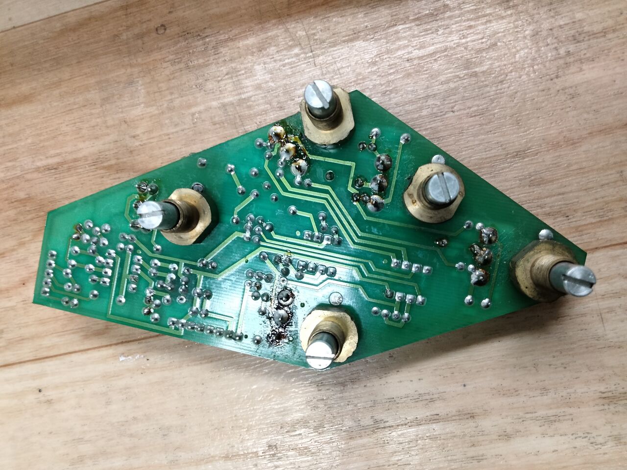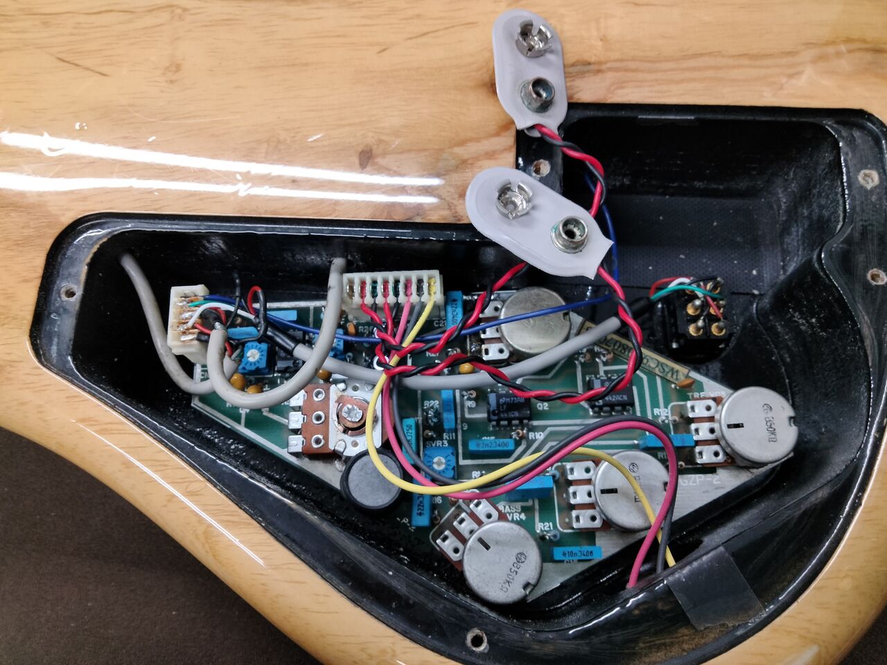 お話を伺うと今回はまったく音が出なくなったのと3バンドEQのミッドがぐるぐる回りっ放しになってしまったそうです。